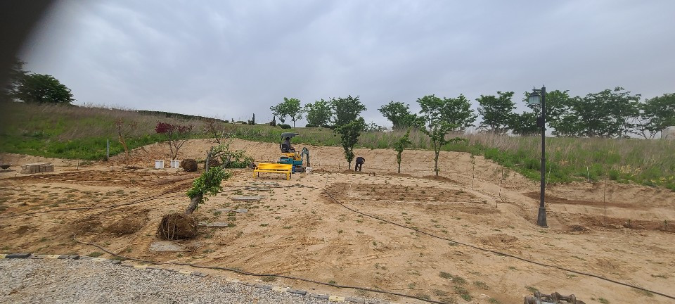 땅을 포클레인으로 밀어 놓고 차 들어갈 도로를 만들고 몽골천막을 쳤다. 화단을 조성하여 꽃을 심고 약간의 먹거리를 자급자족하기 위해 농사도 조금 지을 예정이었다.