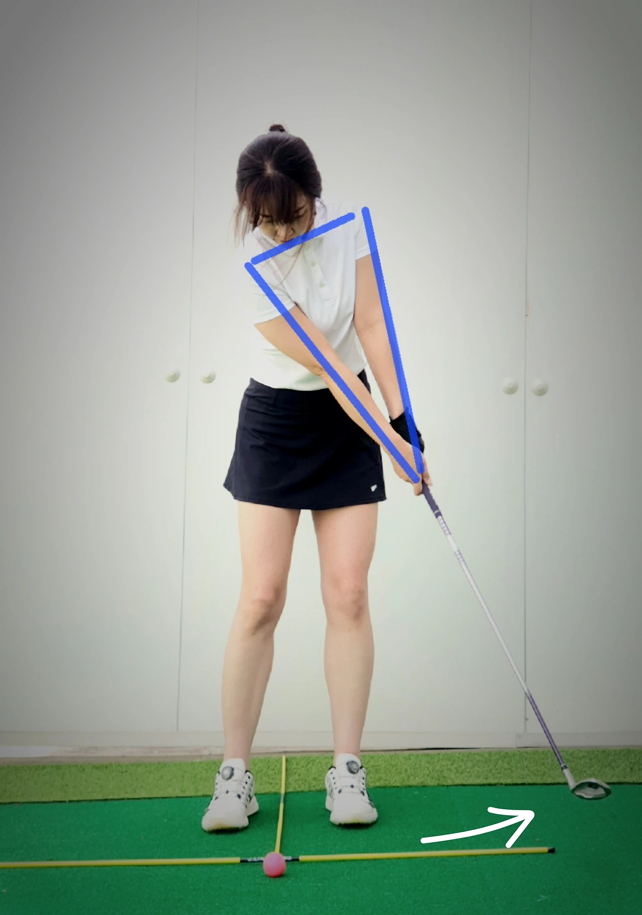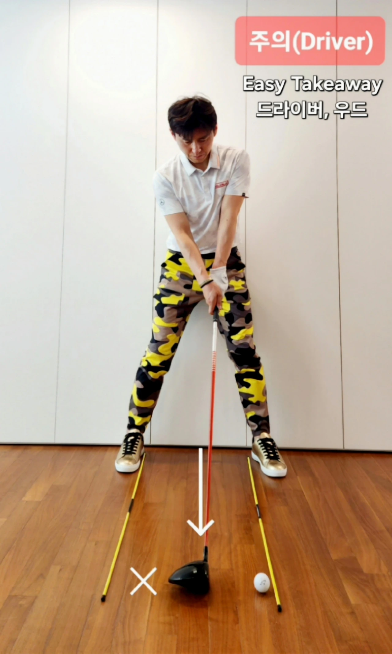 Easy takeaway solution 셋업을 적용해도 드라이버나 우드는 클럽헤드를 발과 발 사이 가운데보다 오른 발 쪽에 가깝게 두지는 않는다.(Essay 8. 참조)