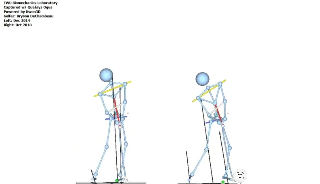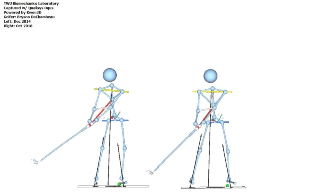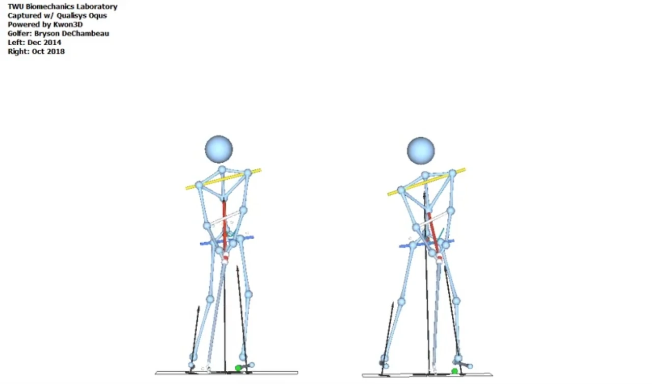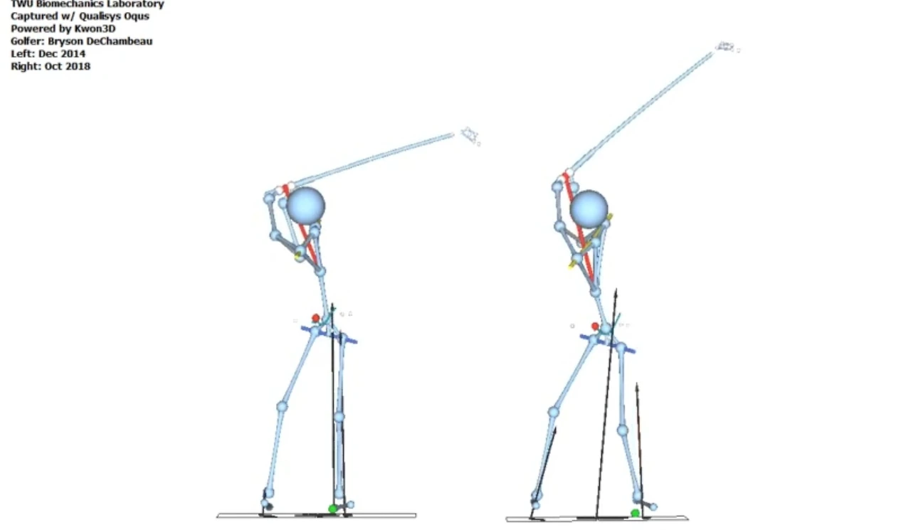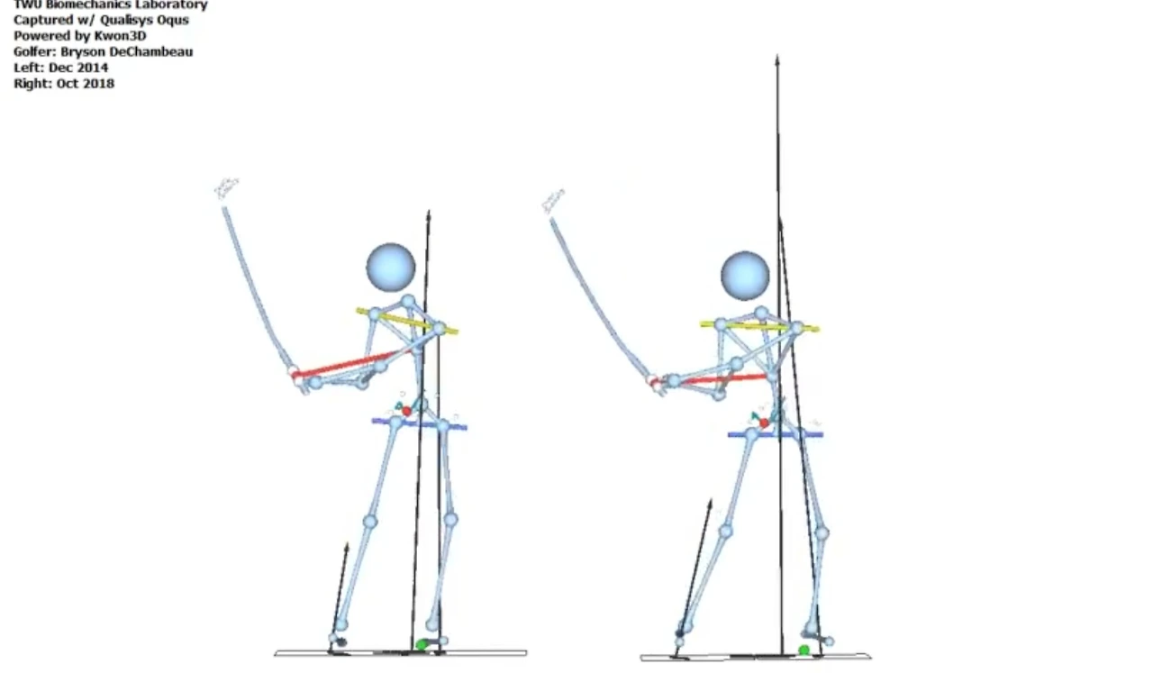셋업자세의 지면반력(출처. 헤럴드경제TV) 브라이슨 디셈보 선수의 비교 영상캡춰본