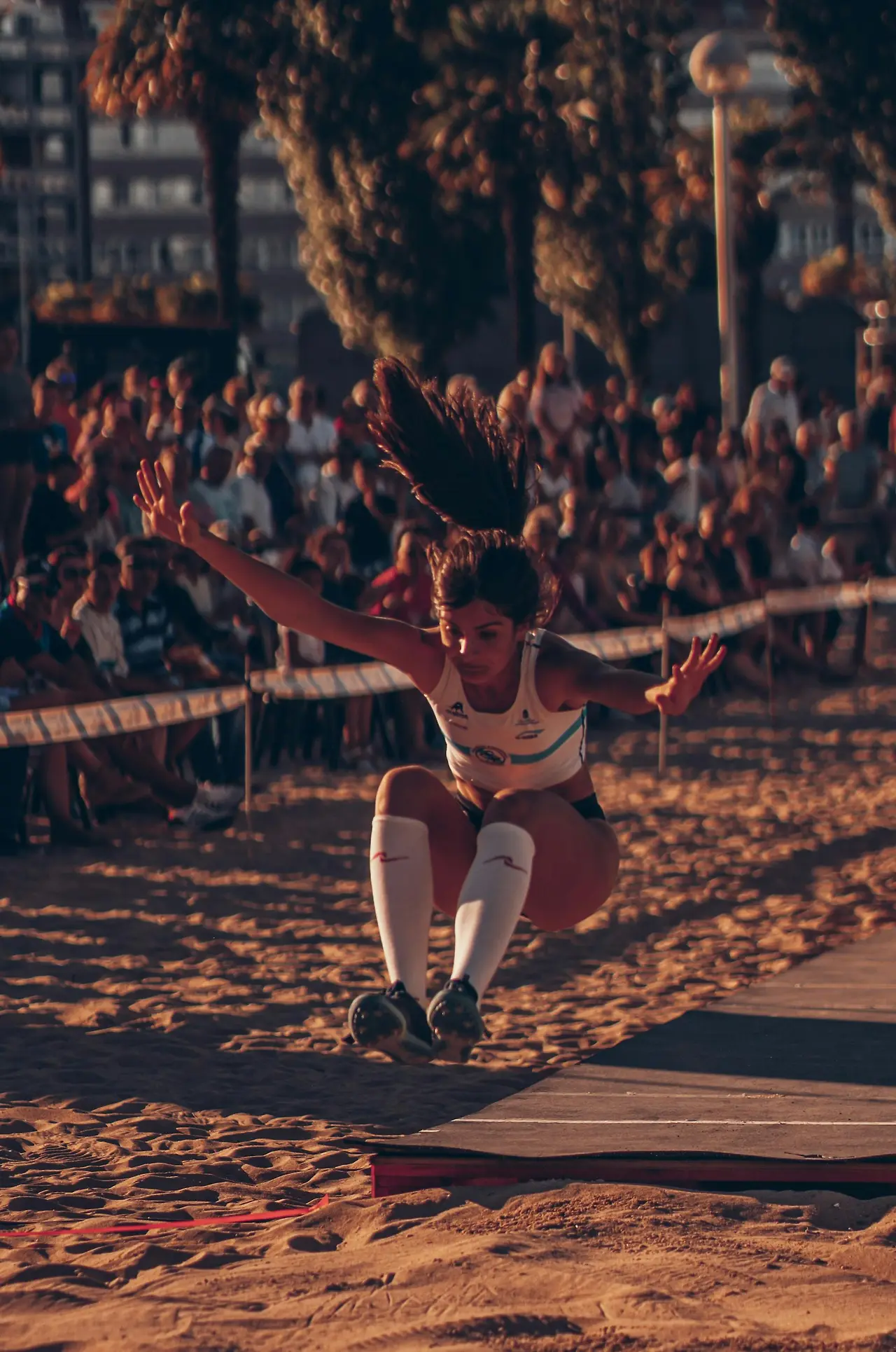SSC를 사용하는 전형적인 점프 동작이 있는 멀리뛰기 동작이다. 지면을 밟는 순간 탄성에너지가 저장되기 때문에 에너지 효율이 높고, 힘이 강해지고, 속도가 빨라진다.