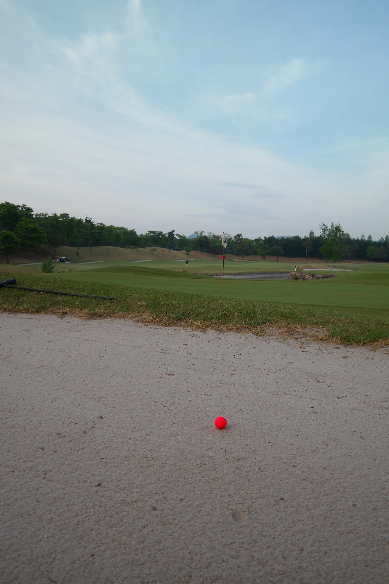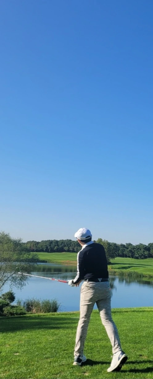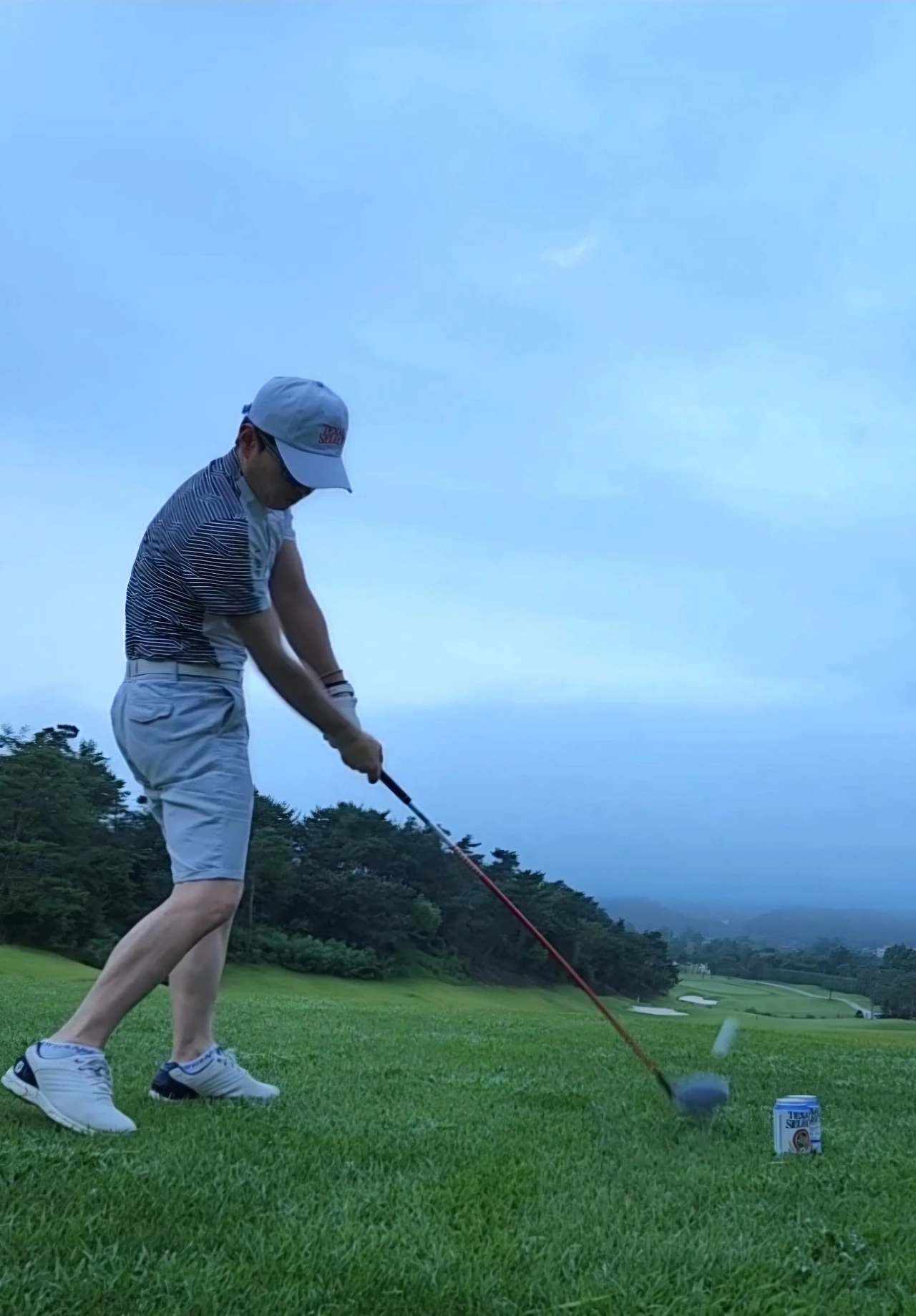 코스에서 좌측에 숲 속으로 볼을 보내지 않기 위해 볼을 티박스 우측에 놓고, 약간의 오픈스탠스를 통해 페이드를 구사하고 있다.