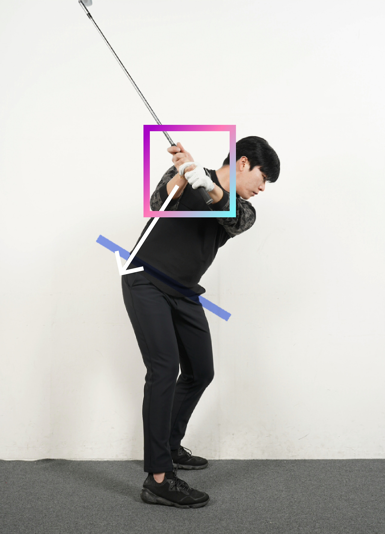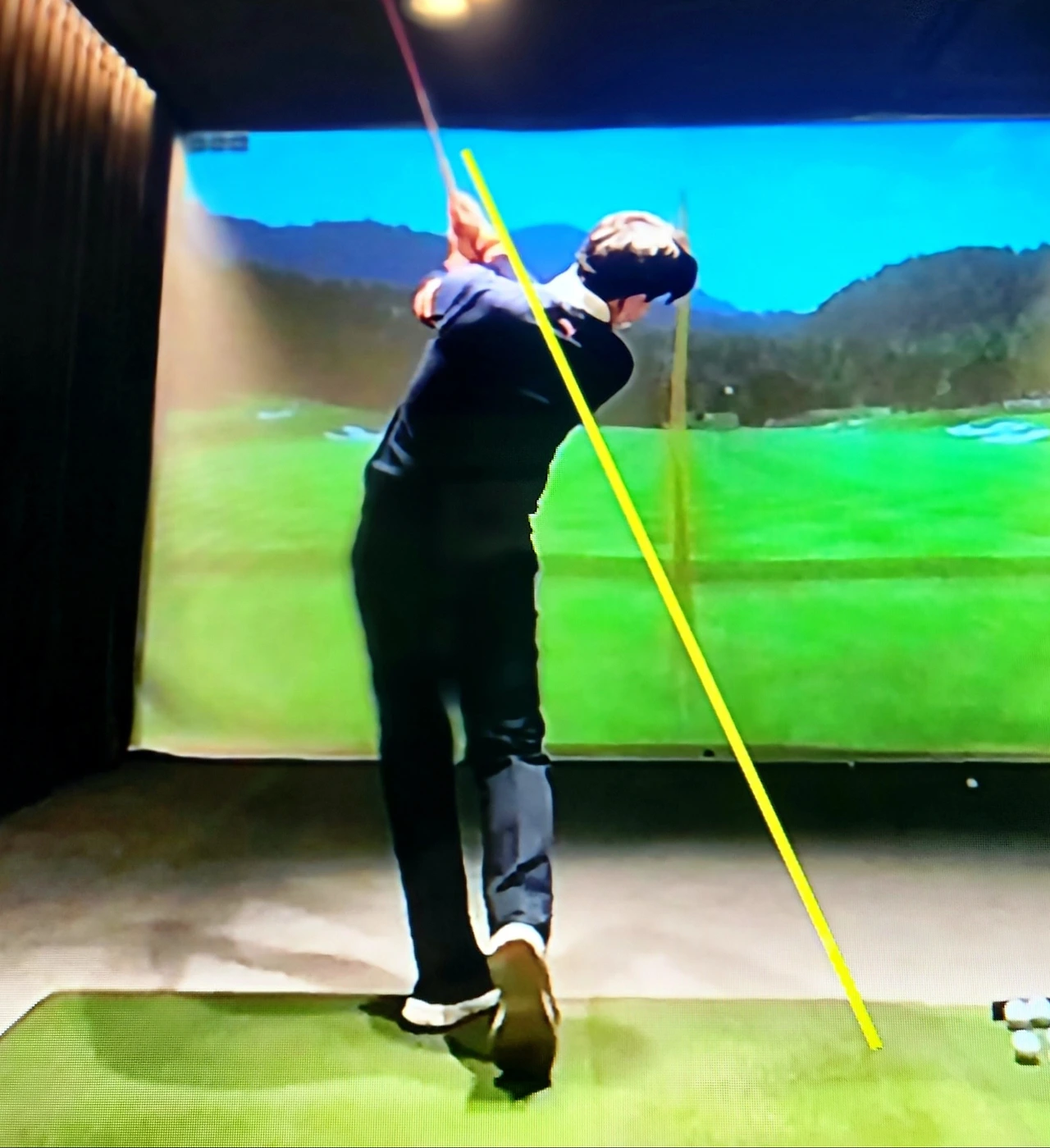 노란선은 셋업시 볼과 어깨를 연결해 놓은 가상의 라인으로 기준이 되는 스윙플레인이다