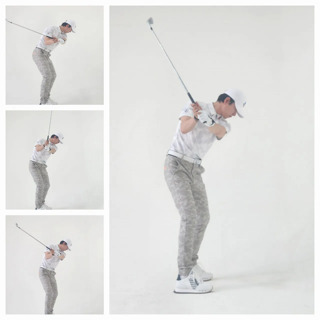 백스윙시 클럽 샤프트의 각도가 가파르거나 완만함을 볼 수 있다. 체형이나 스윙목적에 따라 스윙플레인이 다를 수 있는데, 볼의 비행에 영향을 크게 미치게 된다.