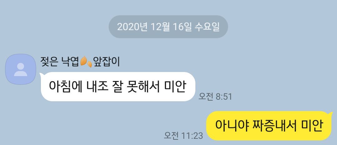 12개월째 이런 일은 다반사. 바쁜 아침, 아내가 특유의 느긋함으로 0.8배속으로 움직이자 순간 짜증이 났다. 지랄 맞은 성질머리 미안.