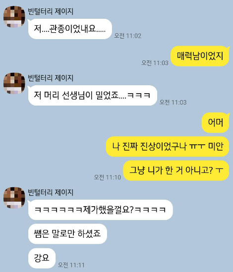 그 당시 최고의 체벌은 반삭이었다. 고등학생에게 머릿빨은 최애 아이템이었을 텐데 그걸 내가 빼앗았다니... 미안해 Y.