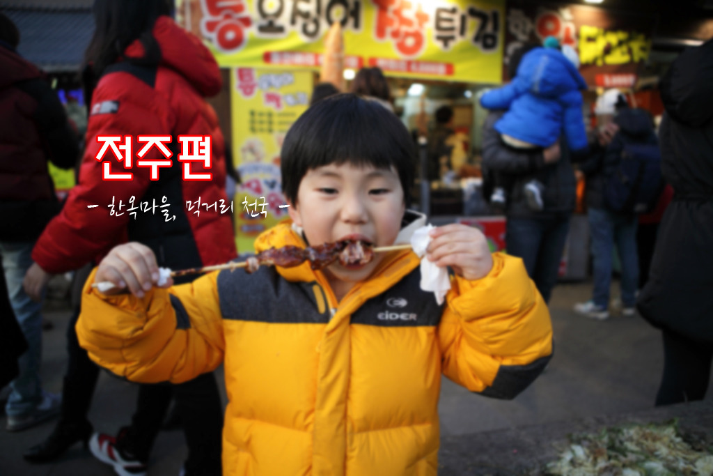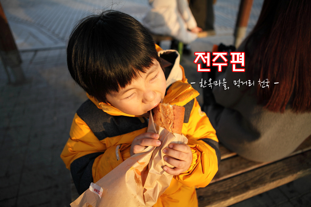 많은 사람을 피해서 한옥마을로 걸음을 재촉했는데 그곳엔 더 많은 사람들로 북적였다. 연말이면서 방학이라 그런지 학생으로 보이는 관광객들이 넘쳐났다. 여행 준비를 하면서 전주 한옥마을에서 가장 유명한 것이 한옥이 아니라는 사실을 접하고는 적잖이 놀랐다. 여행객의 대부분이 우리 전통가옥인 한옥을 보기 보다는 한옥마을을 가로지르는 대로 양 쪽에 늘어서 있는 맛있는 먹거리를 즐기기 위해 온다는 것이다. 이곳 한옥마을 입구에 즐비한 먹거리들은 사실 한옥과 어울리는 음식들은 아니다. 하지만 우리의 입맛을 사로잡는 특이한 맛과 재미가 넘쳐난다. 그래서인지 나이지긋한 어르신들보다 젊은 청춘남녀가 많아 보였다. 진우와 나도 이들 대열에 합류하기로 했다. 우린 둘 다 젊은이의 축에 끼진 못하지만 그들과 똑같이 맛있게 먹을 수는 있으니까.