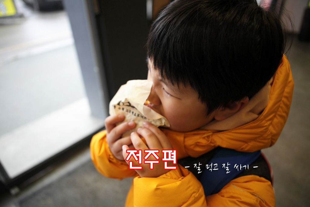 잘 쌌으니 또 배가 고픈 모양이다. 경기전 앞은 어제 갔던 한옥마을 초입에 있어 길거리음식 파는 곳에 가깝다. 진우가 어제 먹지 못한 새로운 먹거리에 도전하자고 나를 이끌었다. 나는 그것도 좋지만 전주에 왔으니 전주비빔밥도 먹어보는 게 어떠냐고 제안했지만 눈 앞의 먹거리 앞에서 나는 철저히 무시당했다. 사실 나도 비빔밥보다는 이것들을 먹고 싶었기 때문에 비빔밥은 다음으로 기약하고 우선 먹고 보기로 했다. 아침시간이라 어제보다 많은 사람들이 있지는 않았지만 그래도 적지 않은 사람들이 경쟁적으로 줄을 섰다. 일단 진우와 나는 상대적으로 줄이 짧은 완자집에서 다섯 알짜리 완자를 샀다. 그리고 나서 어제 줄이 가장 길게 늘어서 있어서 먹어보지 못한 만두집에 줄을 섰다. 완자를 먹으면서 말이다. 다섯 알의 완자는 상식적으로 큰 사람이 세 개 작은 사람이 두 개로 나눠 먹어야 했지만 진우에게 이런 상식이 통할리 없다. 결국은 아빠 두 개 진우 세 개. 아들이 왠수다. 완자를 다 먹었는데도 줄은 별로 줄어들지 않았다. 그래도 허기진 상태가 아니라서 기다릴 만 했다.