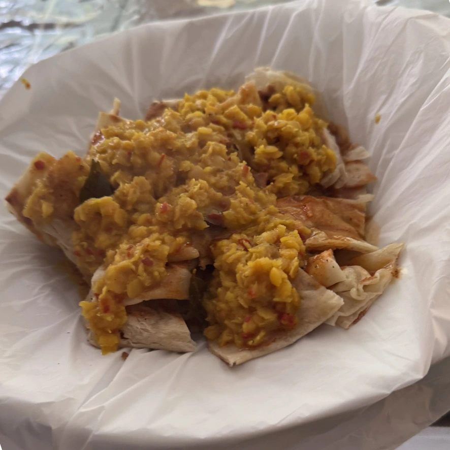 10km가량을 금방 걸어 이동했다. 가랑비 수준이고, 체력도 멀쩡했다. 간판 없는 현지식당에서 커리, 로띠, 밀크티를 250루피에 먹었는데, 이제껏 먹은 현지음식 중 최고였다. 이때 처음으로 현지인들처럼 오른손만으로 커리를 먹기 시작했다. 양념 섞기 편해서, 이후로는 계속 맨손으로 먹었다.