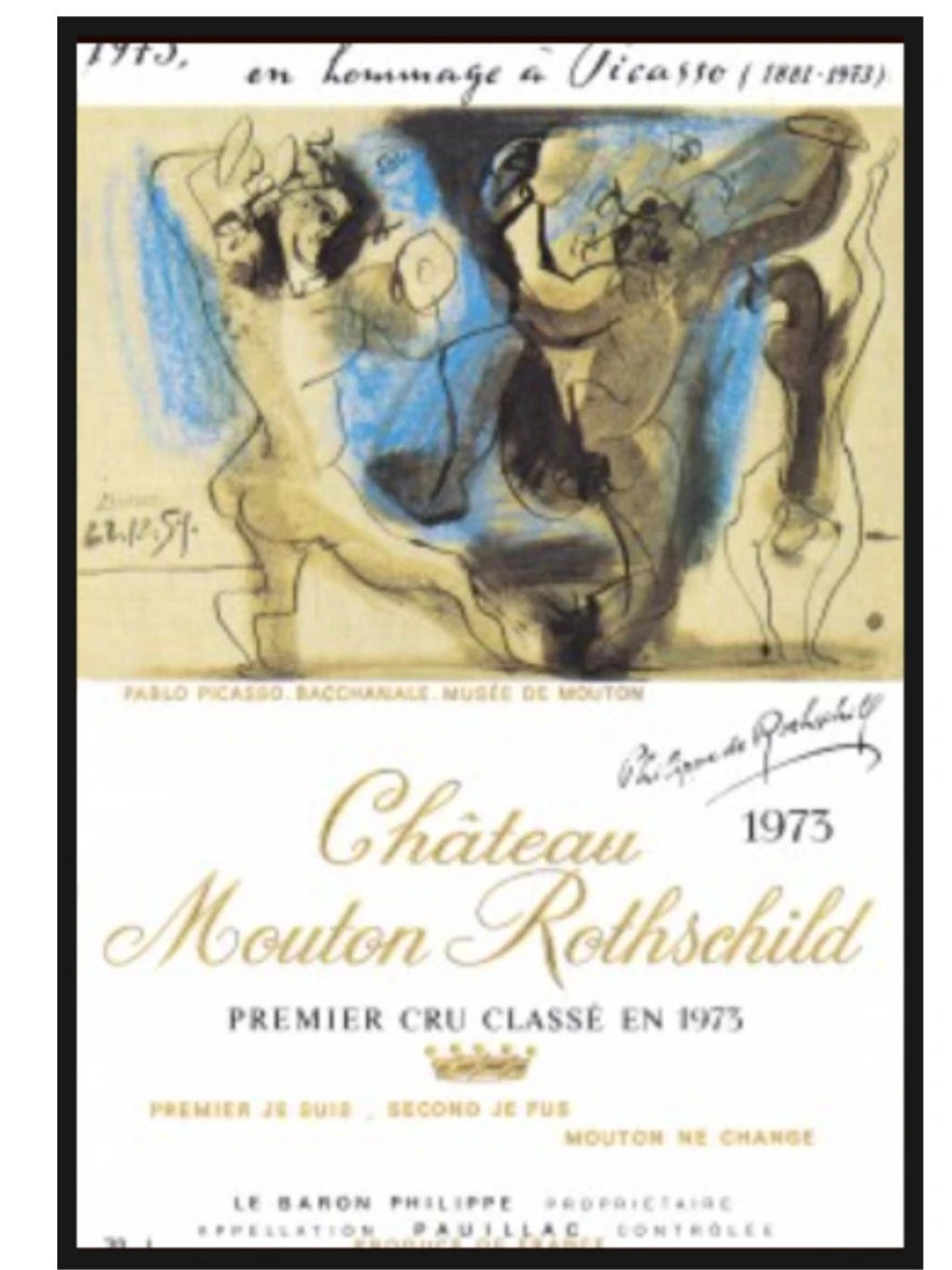 명품 와인으로서 무통의 특징 중의 하나가 레이블에 그려진 유명한 아티스트들의 작품을 만날 수 있는 즐거움입니다. 필립은 최고의 아티스트를 초대해 라벨에 그림을 그리게 했습니다. 살바도르 달리(1958년 빈티지), 헨리 무어(1964년 빈티지), 후안 미로(1969년 빈티지), 마르크 샤갈(1970년 빈티지), 바실리 칸딘스키(1971년 빈티지), 엔디 워홀(1975년 빈티지), 파블로 피카소(1973년 빈티지) 등 기라성 같은 아티스트들이 총망라되어 있습니다. 이로써 와인은 그냥 술이 아니라 예술이라는 점을 부각하기 위한 무통의 비전이었습니다.