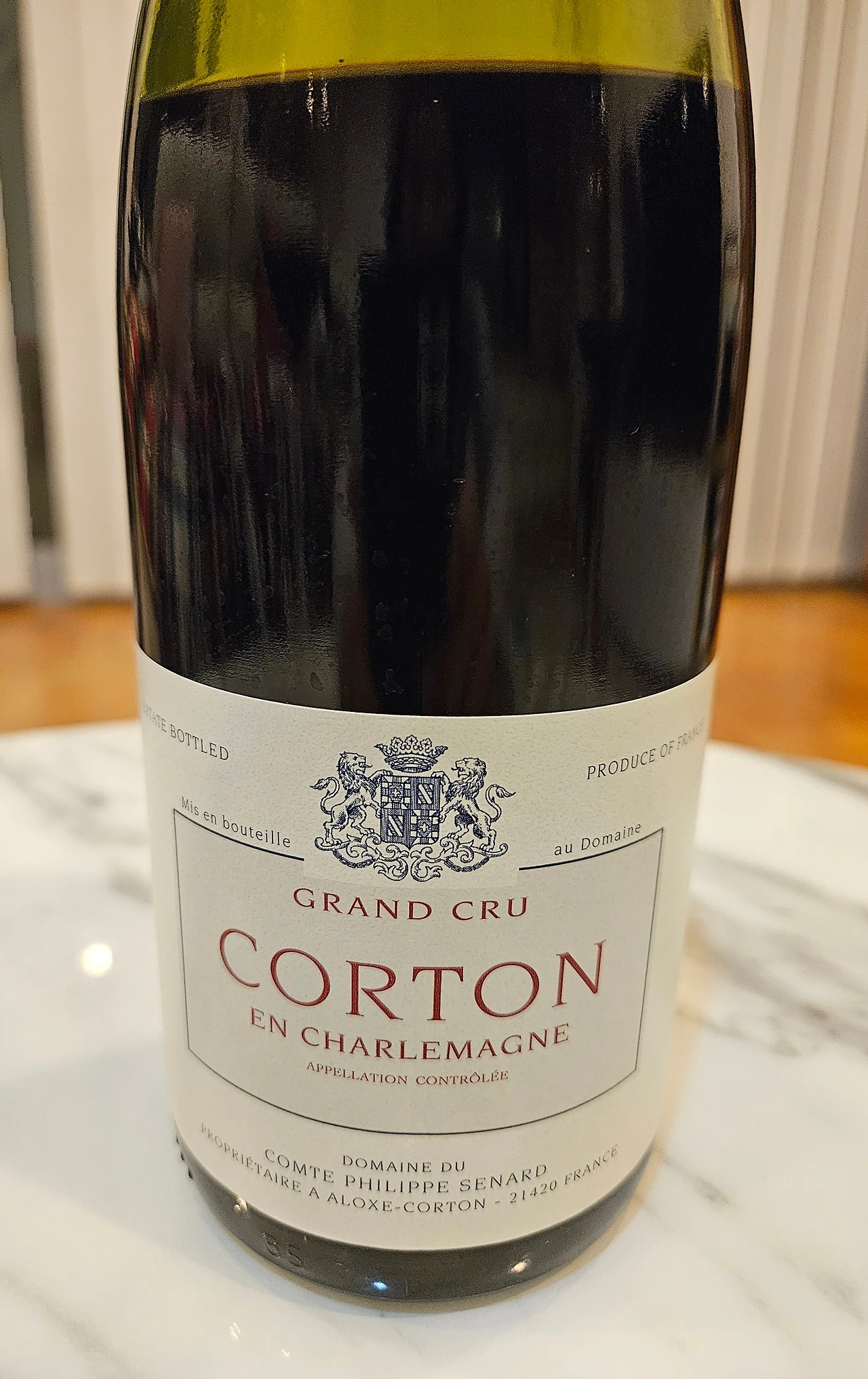 콩트 세나르가 만든 코르통 앙 샤를마뉴(CORTON EN CHARLEMAGNE) 그랑크뤼 2009입니다. 앙 샤를마뉴는 코르통 클리마의 리외디 이름입니다.