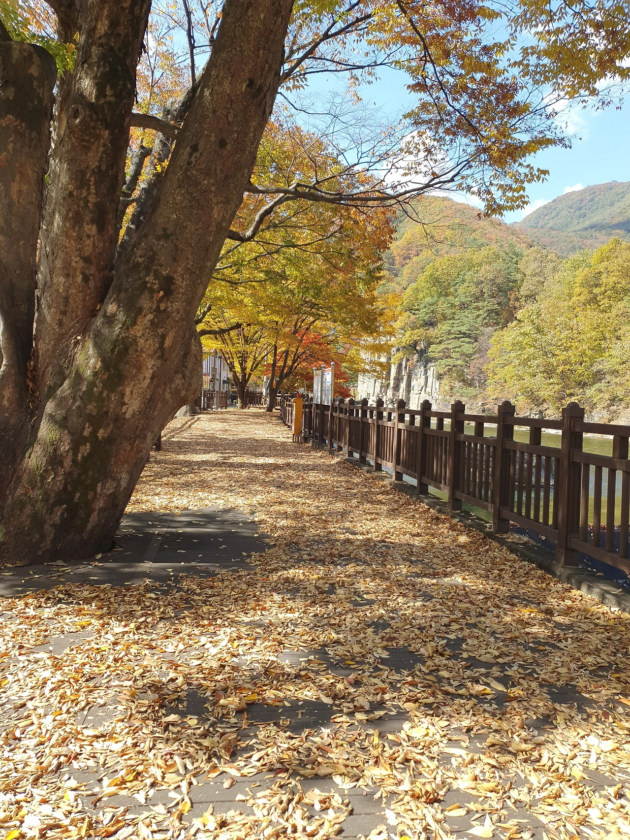 서울로 돌아오기 전 단풍을 느끼겠노라 들른 충주호(청풍호)에서 만난 구담봉과 옥순봉의 절경은 내 마음 속에 깊이 새겨질 만큼 감동이 깊었고 인상적이었다. 물로 채워진 호수와 함께 자리한 기암괴석을 해설해 주셨던 배 안 해설사 분의 유머있는 해설은 여행을 더욱 즐겁게 만들어 주셨다. 나도 궁궐 해설할 때 좀더 재미있는 표현을 공부해야 관람객이 더 쉽고 인상적으로 기억할 것이다. 배 안에서 얻은 자기성찰이다. 숙소 앞에 있었던 사인암의 절경과 함께 도담삼봉까지 단양의 4경을 돌아보고 마음속에 신비한 공기로 무장한 아름다운 절경이 나를 가득 채웠다. 곧 하늘로 날 수 있을 듯한 둥둥 뜨는 기분으로 아직도 여행 속에서 빠져 있다. 눈에 언뜻언뜻 단풍이 물들어 있고 에메랄드 빛의 물결들이 넘실거리며 눈앞에 어른거린다.