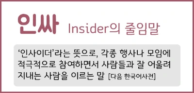 '인싸'가 무슨 신조어인지 모르는 사람은 인싸가 될 수 없다.