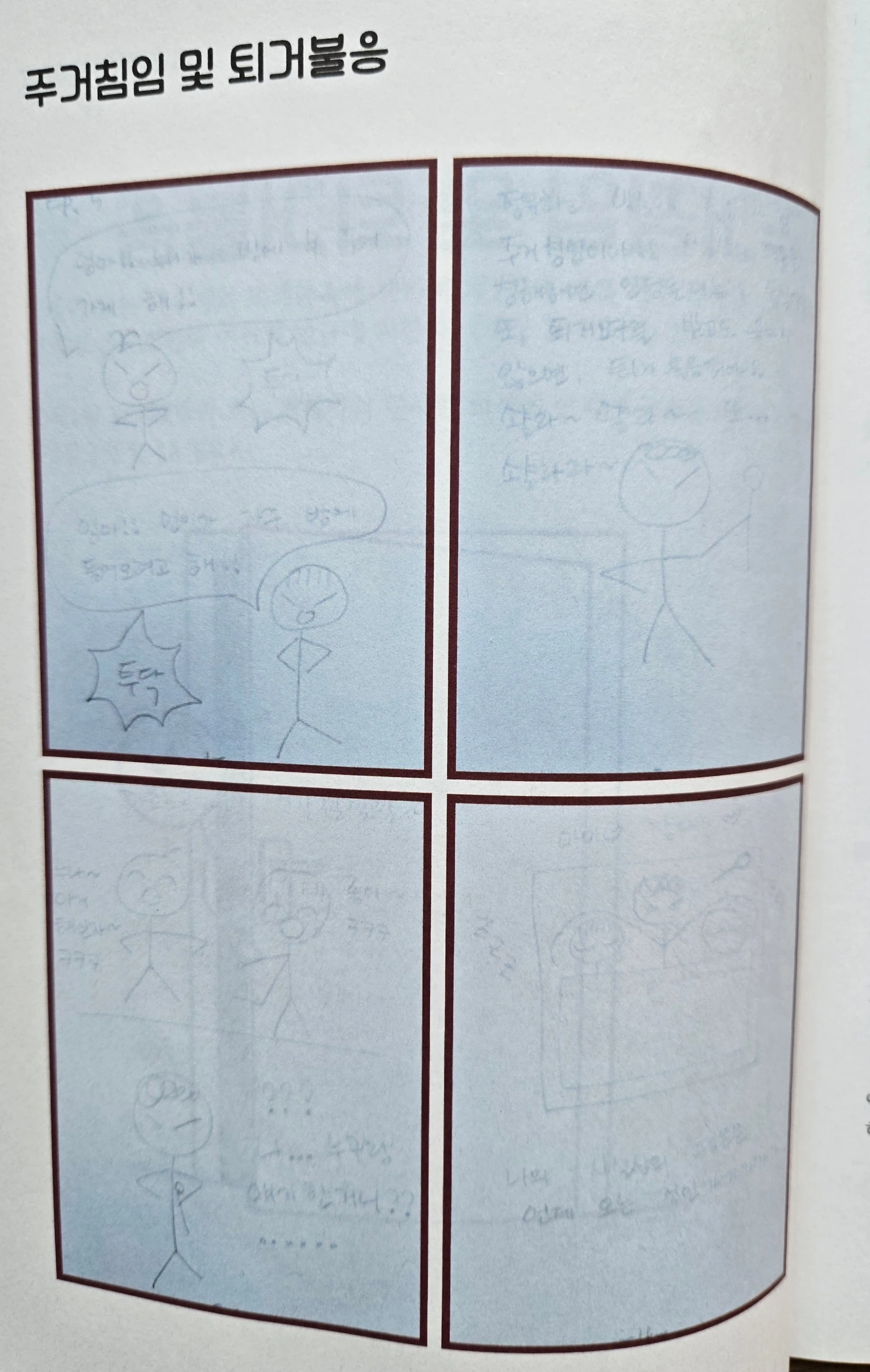 아이들 등쌀에 견디기 어렵구먼. 좀 더 강경하게 주거침입과 퇴거불응에 대해 말해주면 나아지지 않을까 하는 바람으로 말을 꺼내 본다.