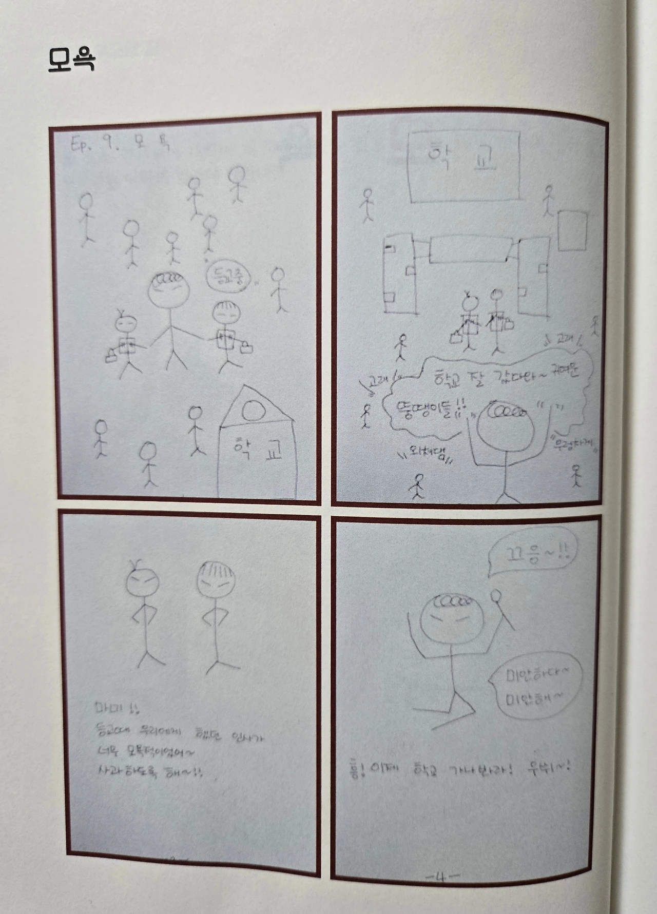 아침밥을 먹고, 합께 손을 잡고 집을 나선다. 도란도란 정답게 이야기를 나누다 보니, 벌써 교문 도착 완료. 헤어지기 아쉬워서 인사가 길어진다.