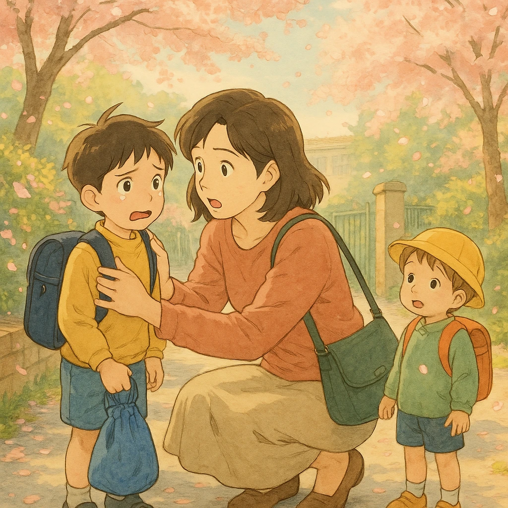 " 있어봐. 엄마가 빨리 해결해 볼게! 너 일단 올라가 있어. 엄마가 얼른 실내화 가방 집에가서 가져올테니까!"