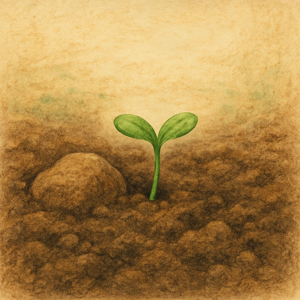 잡초일 지도 모를 일 인데, 이 작은 떡잎이 마치 어디서 굴러 온 미운 오리 새끼라도 되는 마냥 -