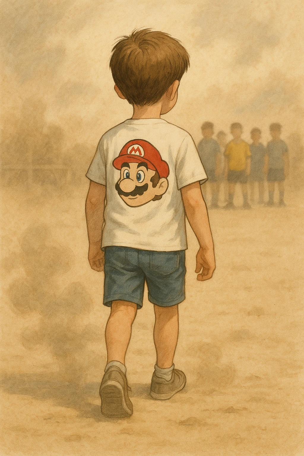 하지만 돌아온 것은, 모래가 뒤엎인 얼굴과 눈물을 애써 참으며 닦아내느라 얼룩덜룩해진 퉁-한 얼굴과, 슈퍼마리오 프린팅이 크게 그려진 아이의 단단한 뒷 모습이었다.