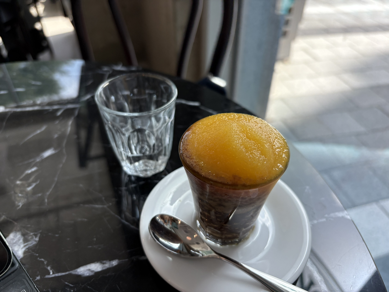 그곳에서, 나는 가장 매력적일 것만 같은 설명의 에스프레소 ‘오네로쏘’ 를 주문했고, 즉각 통 유리창을 통해 나를 쬐이고 있는 햇살을 마음 껏 만끽했다.