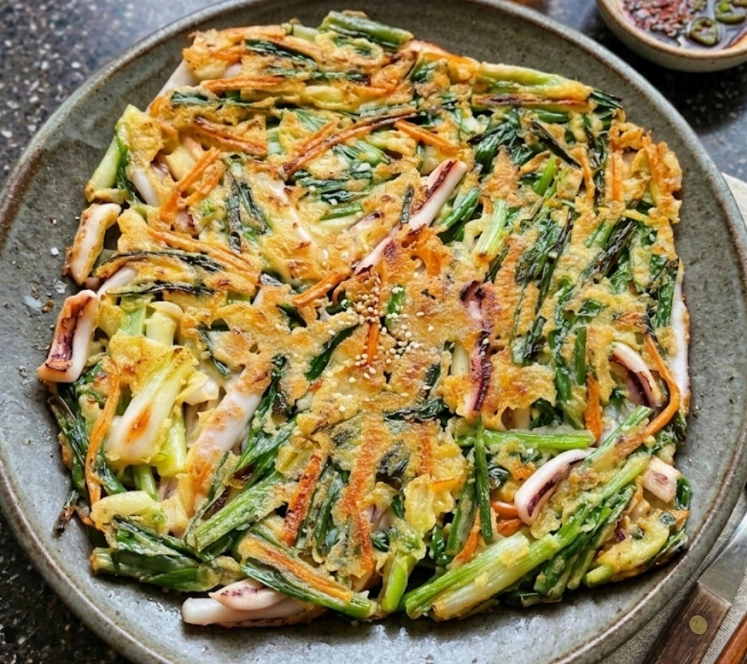 갓 무쳐낸 파김치와 오징어 송송 파전을 곁들이니