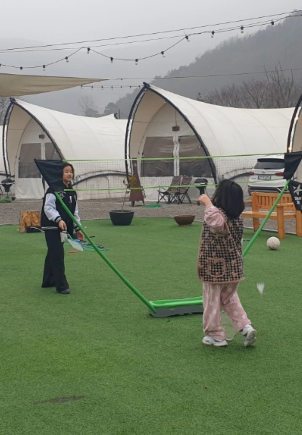 배부른 식사 후에는 배드민턴 시합이 열렸다.