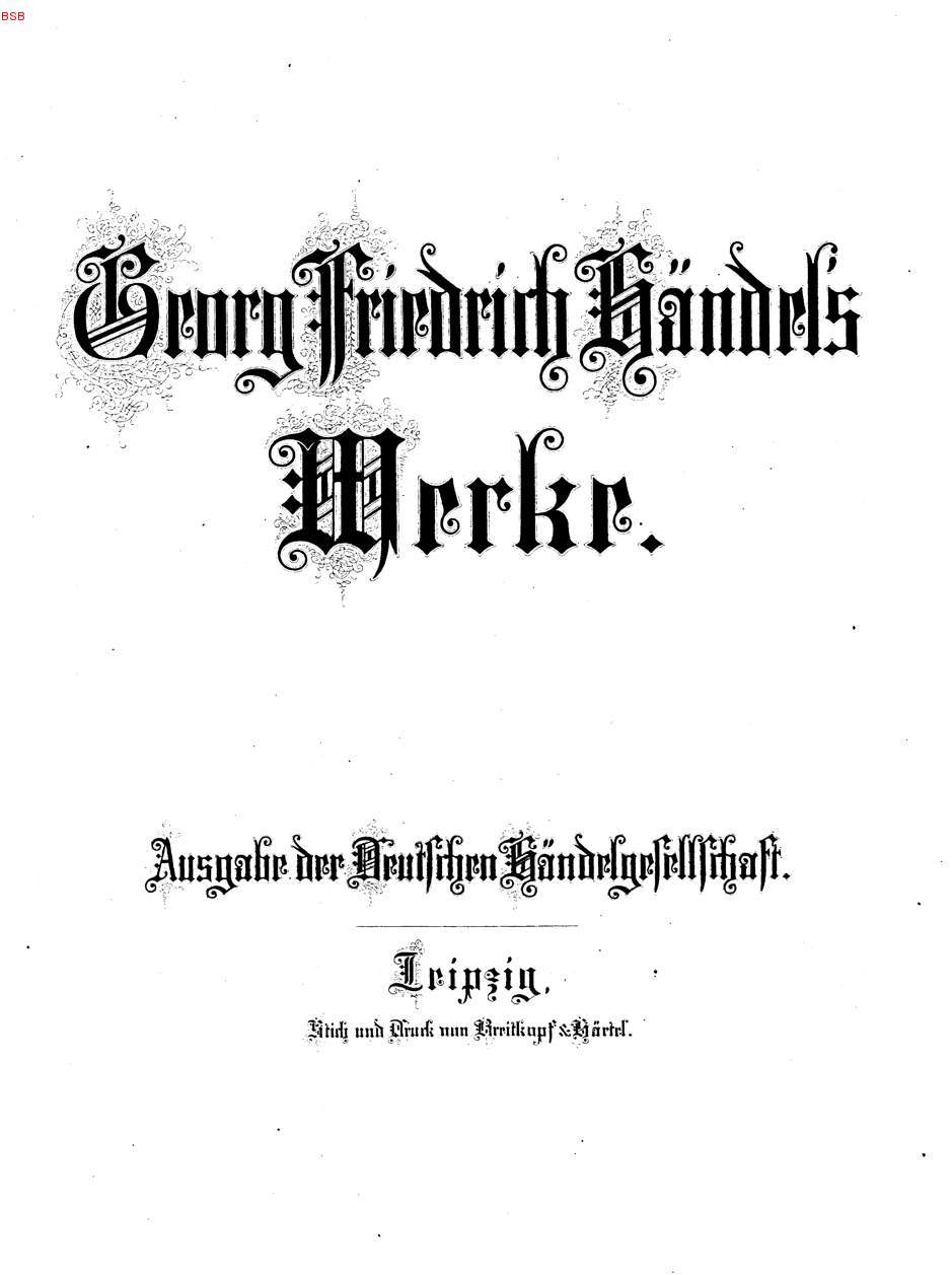 Hallische Händel-Ausgabe (HHA)는 학구적으로 중요한 헨델의 작품을 모두 수록한 에디션입니다. 1955년에 Bärenreiter 회사에 의해서 출판이되었고, 각각의 책에는 헨델의 작품이 출판된 순서대로 기록되어있고 이를 바탕으로 헨델작품번호인 Handel-Werke-Verzeichnis (HWV)가 붙여졌습니다. Terence Best와 Wolfgang Hirschmann가 주요 편집자들로 구성되어진 HHA는 Bernd Baselt가 정리한 시스템을 따르고 있고, 1858년과 1902년 사이에는 Friedrich Chrysander에 의해서 Händel-Gesellschaft (German Handel Society) 에디션이 편찬되었습니다.