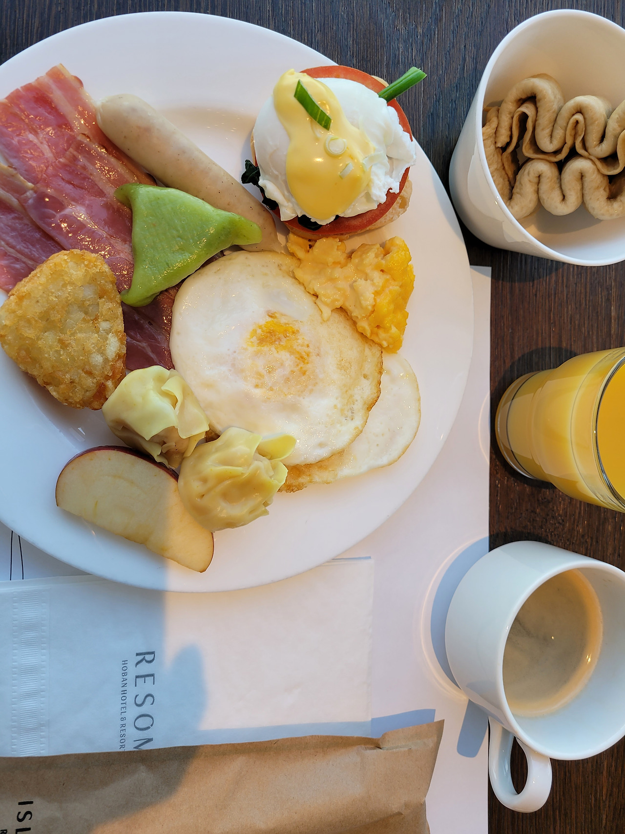 조식 뷔페가 가능한 숙소에 머무르면, 내가 항상 먹는 첫 접시다. 아내는 너무 기름지고 칼로리가 높지 않냐며 타박을 하지만 이상하게 자꾸만 내 손과 입을 당기니 안 먹을 수가 없다. 난 이거 때문에 조식 먹는다고!