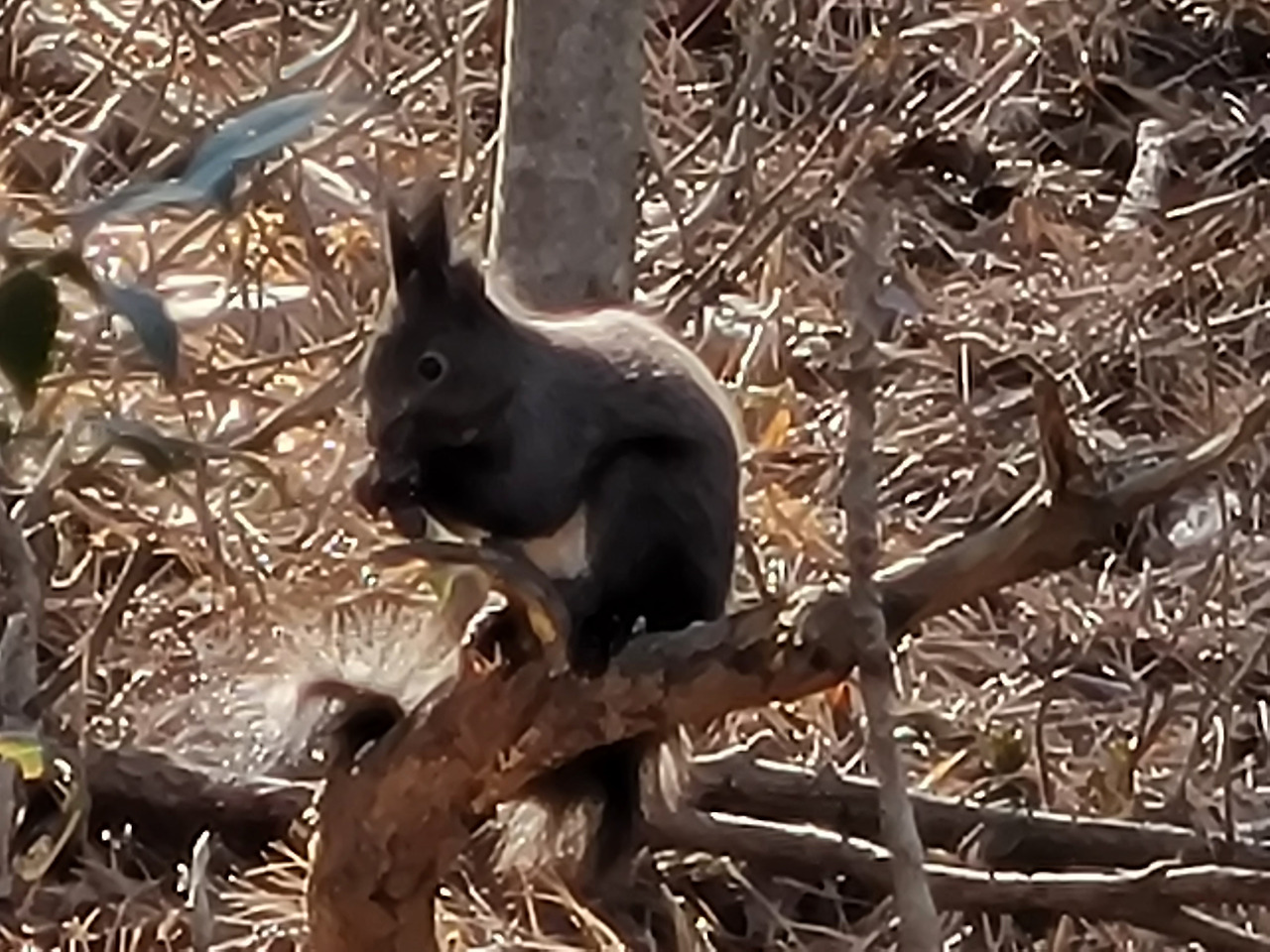 조금 이른 소풍을 나와서 도시락을 먹고 있는 청설모