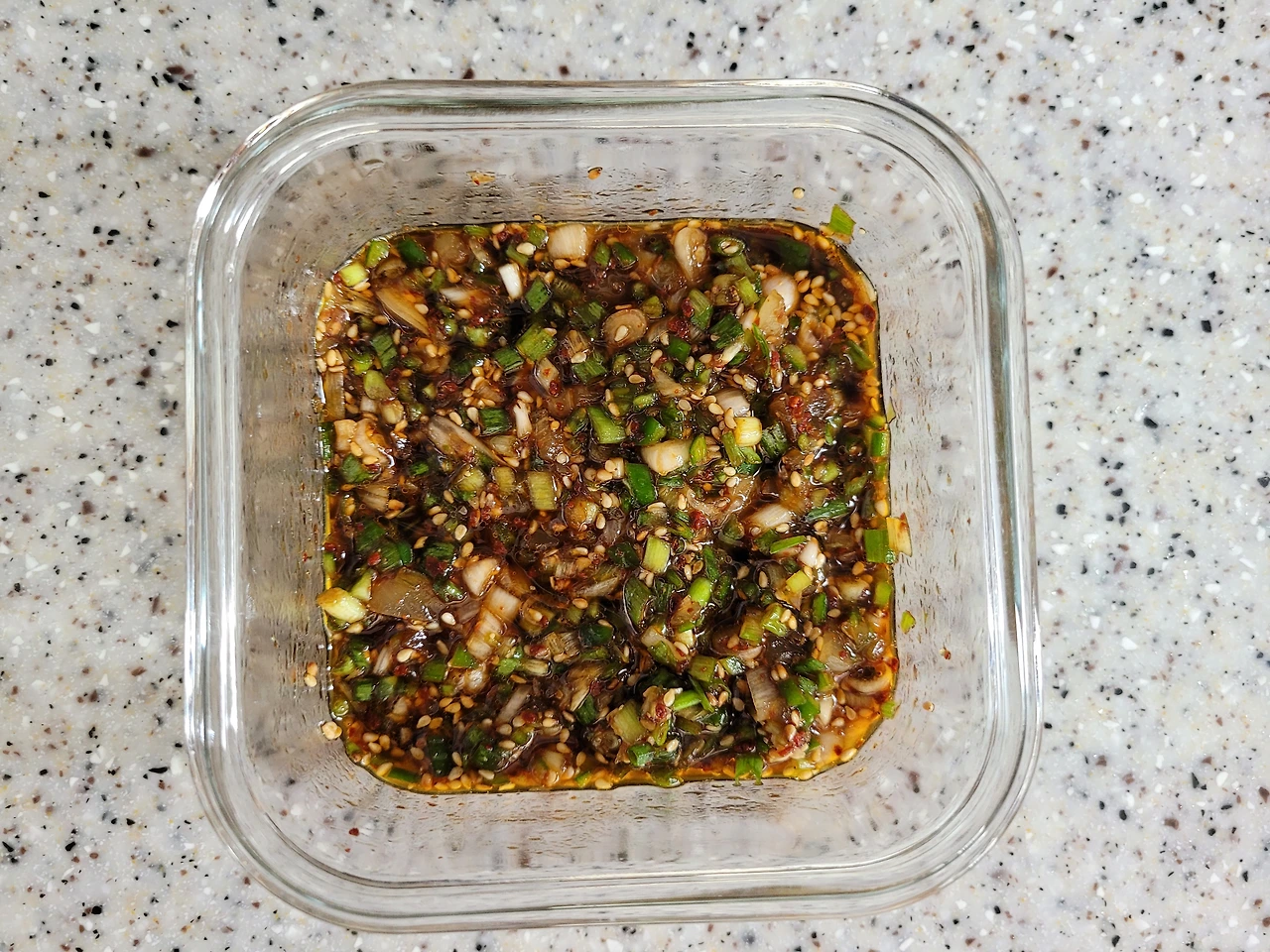 특급 양념장 (출처 : 김재호) 잠시 불려둔 잡곡에 볶아 놓은 가지를 함께 넣고 취사 버튼을 누릅니다. 그리고 역시나 '제'가 잘 손질해서 냉동실에 넣어 둔 쪽파를 이용해서 양념장도 만들기 시작합니다. 이때부터 슬슬 입에 침이 고입니다.