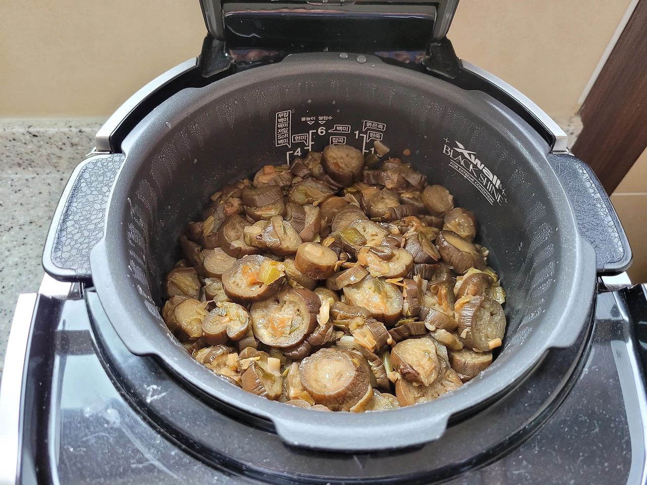 잘 볶아진 가지 (출처 : 김재호) 저는 잡곡을 씻어 밥 할 준비를 합니다.