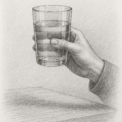 민수는 투명한 물컵을 들어 올렸다.