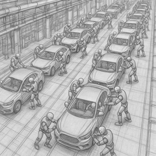 정해진 위치에서 용접을 하고, 부품을 나르고, 반복 작업을 빠르게 처리했다.