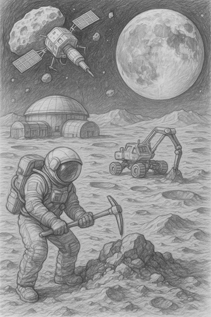 달과 소행성에서의 광물 채굴.