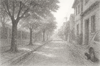 아주 멀리서 간간이 발소리가 들릴 뿐.