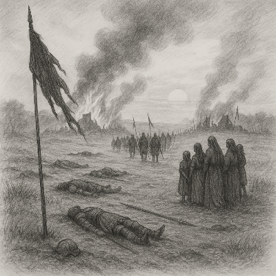 이긴 자들은 창을 거두었고, 진 자들의 마을은 이미 불길에 삼켜지고 있었다.