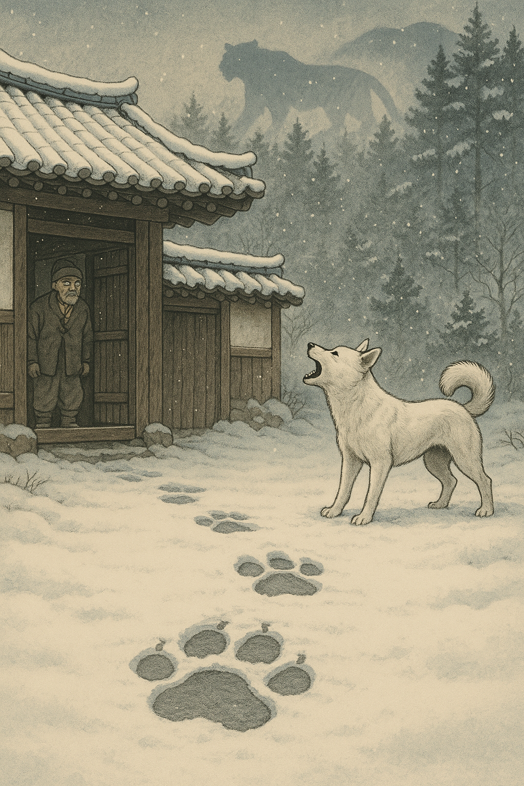 몇주 전부터 마을 외곽 지역의 닭장에서 닭이 한두마리씩 없어지고, 닭장의 울타리가 찢어진 흔적이 발견되어 삵 또는 족제비의 소행이라 여겼다.그러나 그날 아침엔엔 닭장의 찢어진 자리에 덧대여있던 나무 판자에 발톱자국과 함께 누런 털 몇 가닥이 떨어져 있었다.호랑이었다.