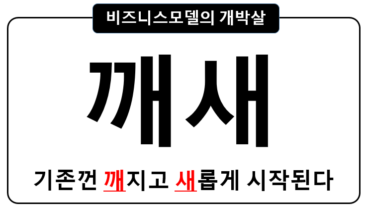 즉 기존 비즈니스모델(BM)은 완전히 깨지고 새로운 비즈니스모델으로 다시 시작된다는 의미임.