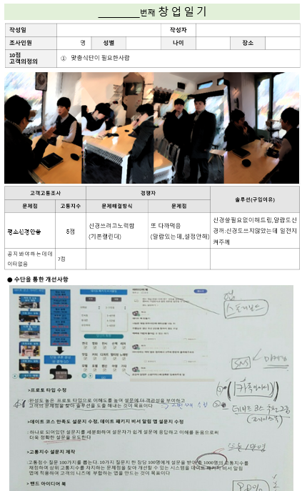 뽀찌 먹을 생각에 기대 가득한 나: 자~일단 고객 조사부터 한 해보죠... 제가 만든 창업일기인데 이거 가지고 목표고객인 대학생부터 가설 검증해봐요.