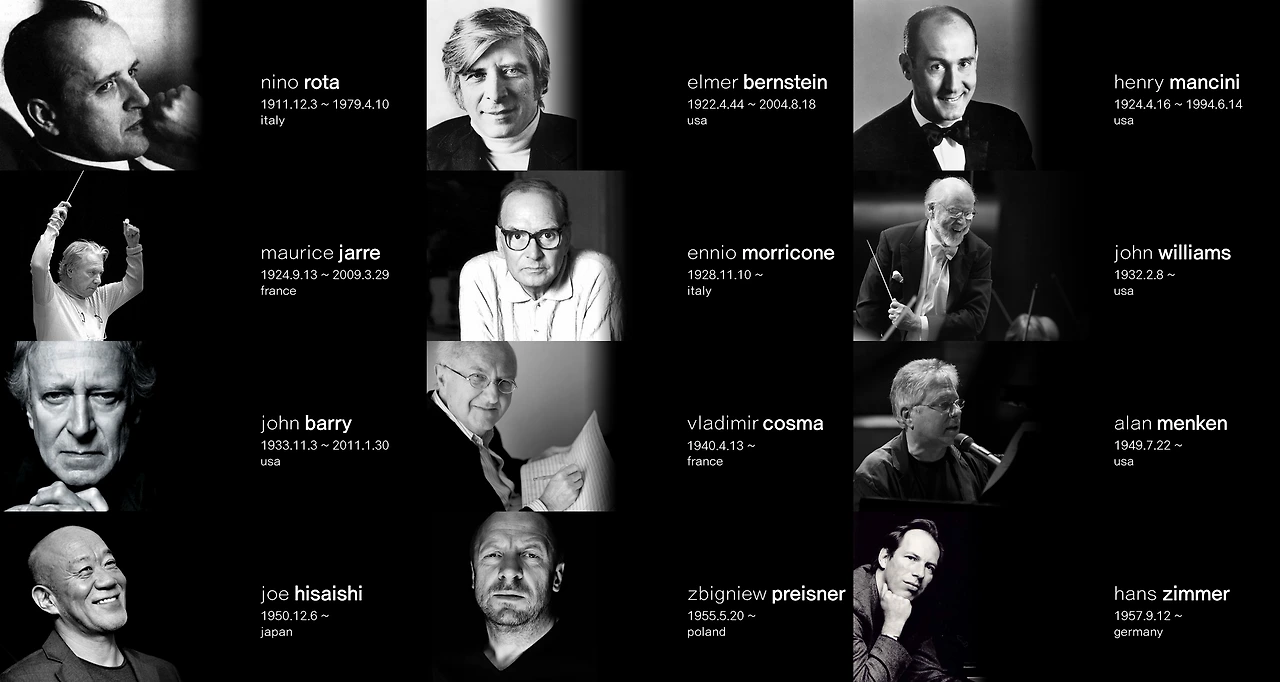 니노로타, 한스짐머, 헨리맨시티, 모리스쟈르, 엔니오모리꼬네 등
