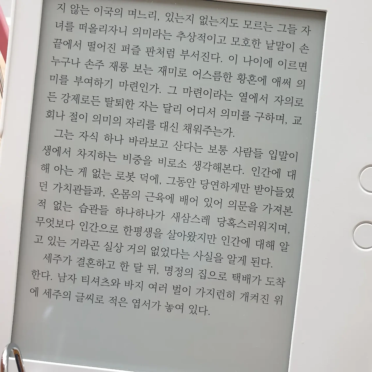 PC나 스마트폰이 아닌 #전자책 그 자체는 이번이 처음이라 사실 비교할 만한 구석이 제겐 없습니다. 그래서 한 사흘 정도 야외(?)에서 사용한 '체험기'? 정도만 정리해볼래요.