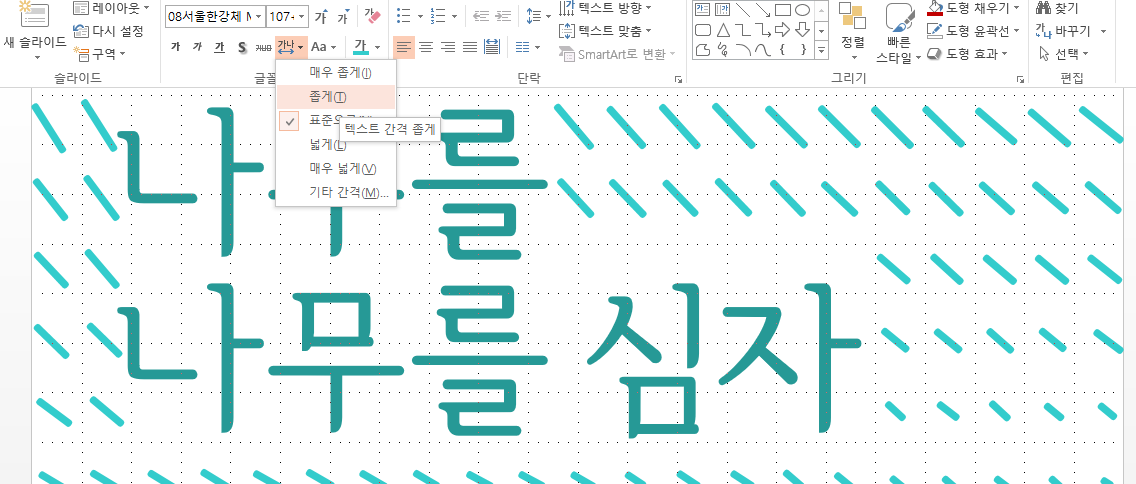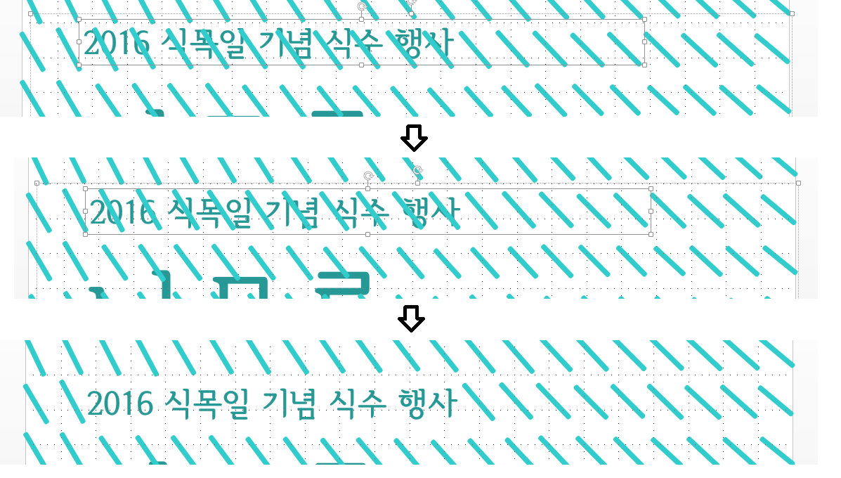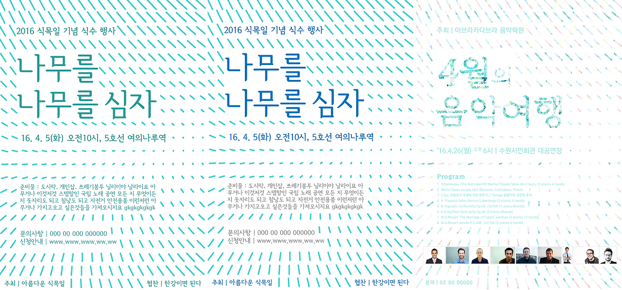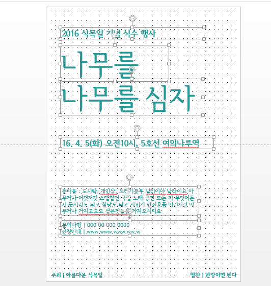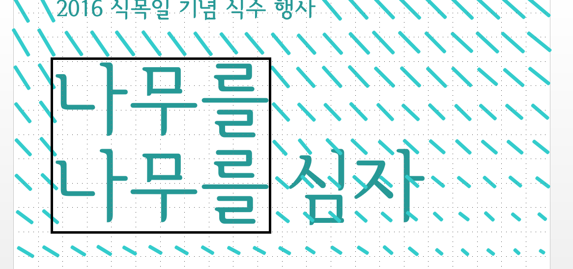 저는 곧 식목일이라 나무심기로 가정해봤는데요. 서체는 [서울한강체M,B]입니다. 검색하면 무료로 내려받을 수 있습니다.