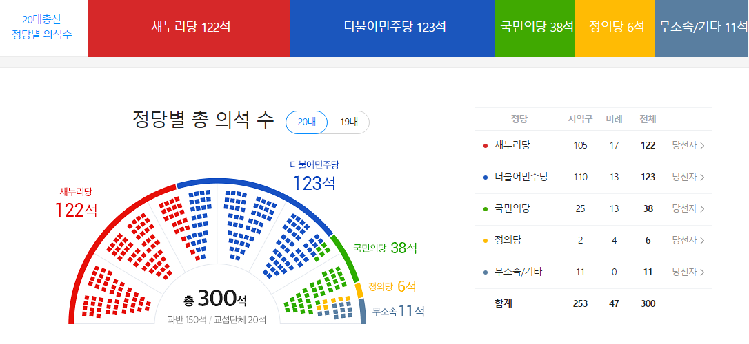 무소속의 대부분이 새누리라는 점을 따져도 굉장한 여소야대 결과다.