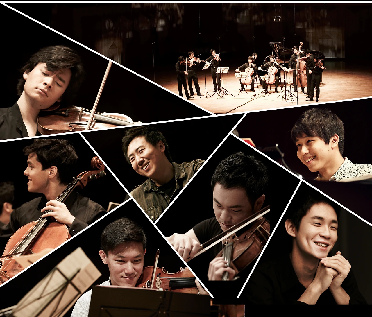 위 사진의 단체컷처럼 오늘의 의상도 검은 셔츠에 검은 팬츠, 검은 구두였다. 젊은 연주자들이 검은 의상에 긴 활을 들고 걸어나오는 모습은 날렵했다. 마치 사극에 나오는 호위무사들의 느낌이었달까. 젊은 연주자들이니만큼 '이미지'가 주는 매력이 있었다. 물론 여성 관객들의 환호성도 빠질 수 없었다.