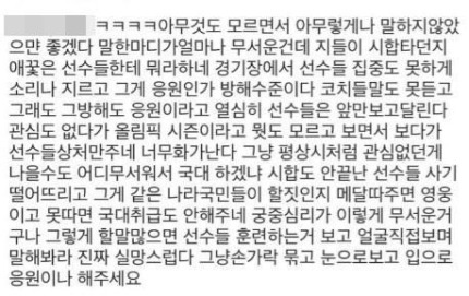 p.s. 장수지라는 선수가 이런 글을 올렸다는데,
