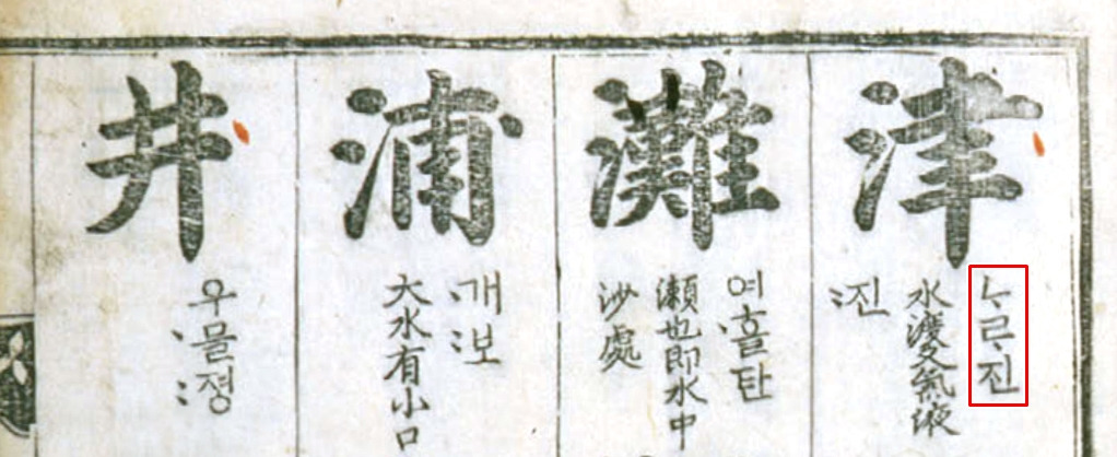 ≪훈몽자회≫(1527)를 보면 ‘나라 진’에서 보듯 ‘나루’의 옛말은 ‘나라'다. ‘날’은 소리가 어금지금한 ‘놀, 나르, 널, 너르’ 따위로 곧잘 꼴을 바꿔 나타난다. 지역 말에서도 나루는 ‘날’(나루), ‘날ː앞’(나루 앞)으로 실제 볼 수 있다. 놀미는 ‘놀+미’로 쪼개서 생각할 수 있다. 이때 ‘놀’은 ‘놀’로 ‘나루’를, ‘미’는 ‘뫼’가 아니라 ‘밑’으로 보아야 한다. 곧 ‘나루 밑’이다. ‘놀밑’에서 [ㅌ] 소리가 떨어져 나가면서 ‘놀미>놀미’가 된 다음 한자로 적으면서 ‘노봉’으로 되었다고 봐야 자연스럽다.