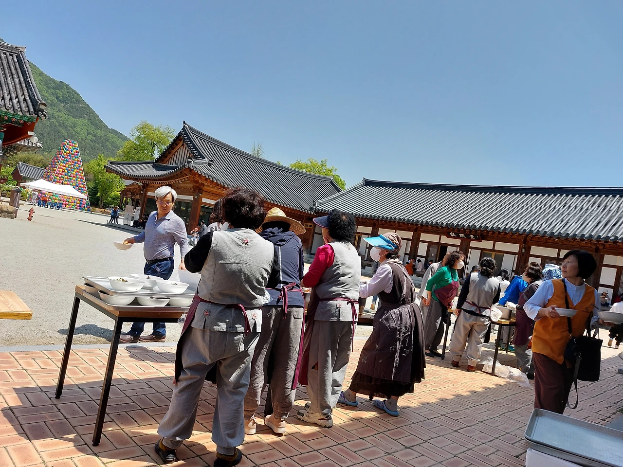 해마다 비빔밥을 준비하는데, 이미 비빔밥 맛집으로 소문나서 육이오 때 난리는 난리도 아냐. 주지스님 스케일이 남달라서 비빔밥에다 향긋한 연꽃 차, 떡볶이, 물 한 병씩, 앵겨주고, 재질 좋은 천가방에다 떡이랑 염주, 경전까지 나눠주는 곳은 이곳밖에 없어. 워낙 숫자가 많다 보니 가방은 밥 다 먹고 나갈 때 한 사람씩 나눠주는데, '우리 부모님이 연로하셔서 저기 휠체어에 앉아있다'라고 하면 한 개를 더 주더라고. 그럼 다시 끝줄에 서서 또 받는 거야. 어느 여시 꼬빼기가