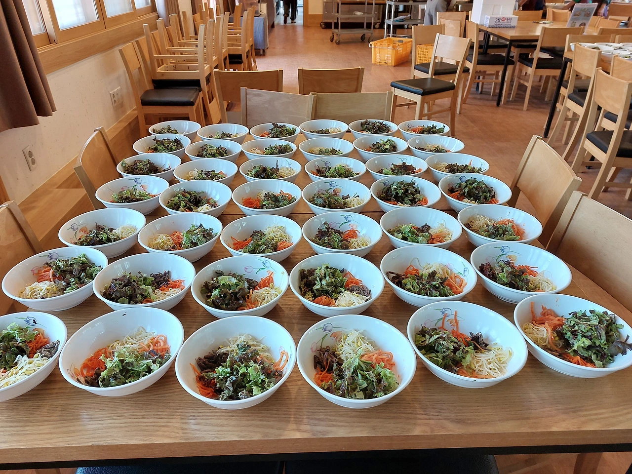 여기도 아침 8시부터 봉사를 시작하는데, 봉사자들 먹으라고 미리 김밥도 100개씩 주문해 놓았더라고. 맘대로 몇 개 집어넣어. 먼저 집는 게 임자야.