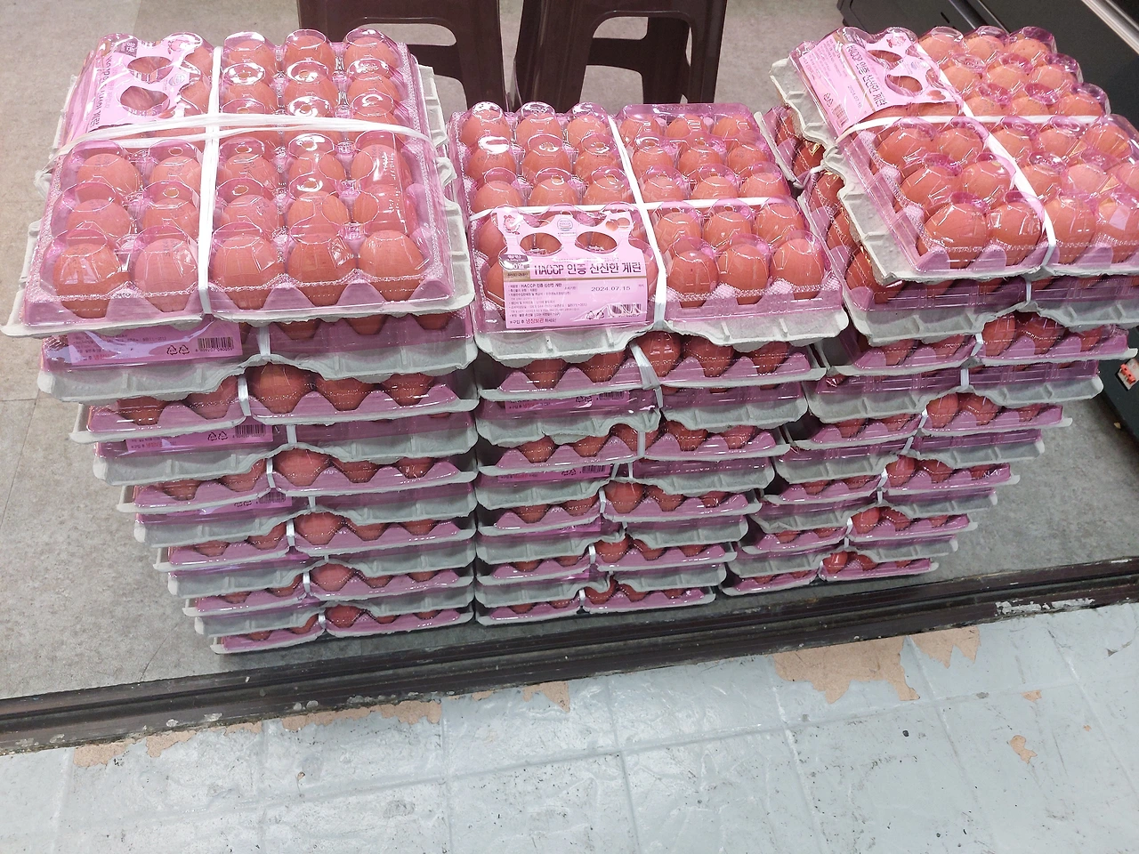 어라? 숫자가 안 맞습니다. 다시 세어봅니다. 80판이 와야 하는데 60판뿐입니다. 한판에 30개 라더니 15개 들어있네요. 그리고 가장 중요한 수고비 몫으로 1세트가 더 와야 하는데 세 번 네 번을 세어도 딱 떨어지는 60판입니다. 뭐가 크게 잘못되었음을 직감합니다.