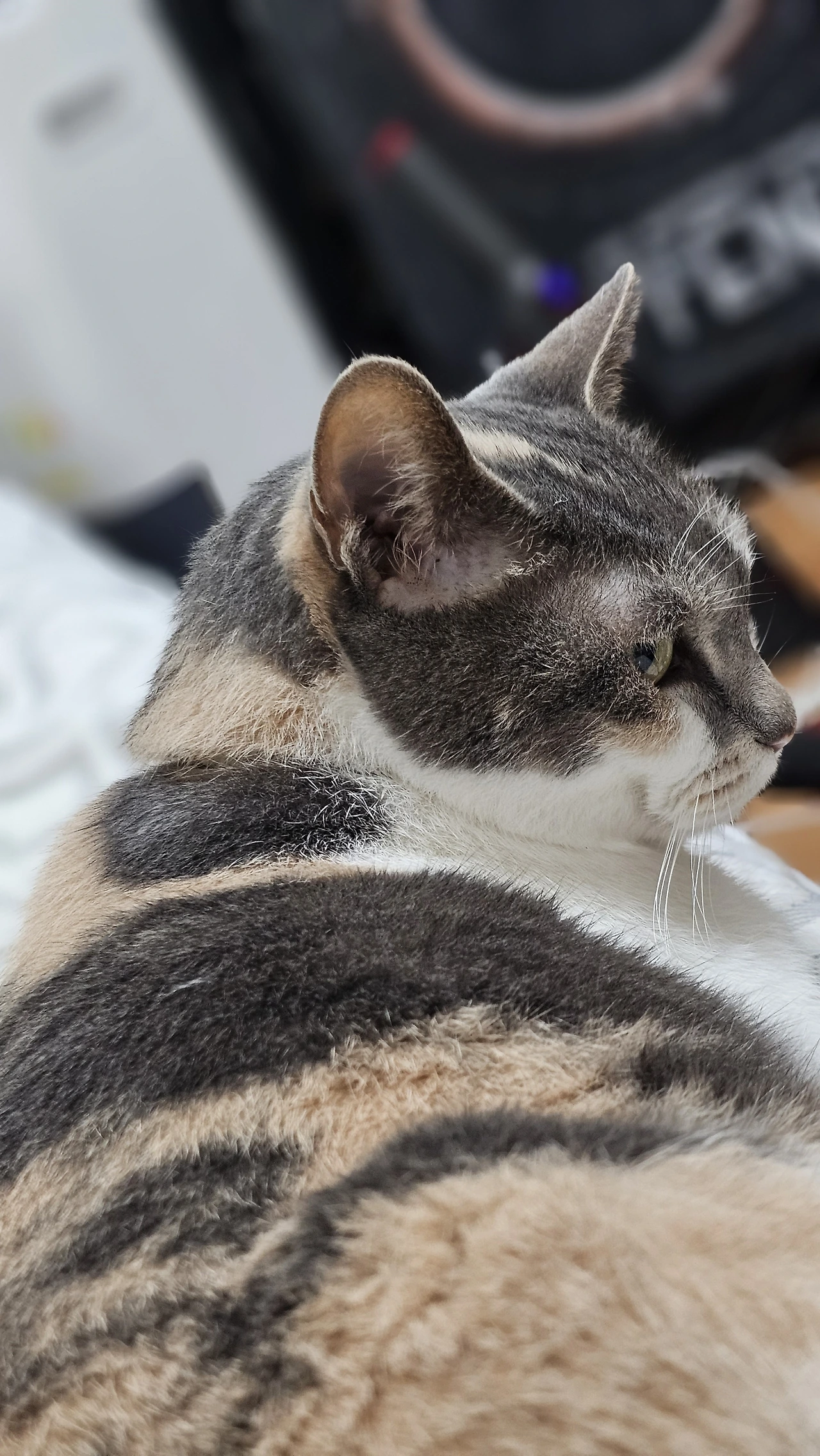 어제는 감자 한 박스를 집사 혼자서 깎고 있더군. 나는 집사 옆구리를 이마와 코로 문질문질하며 나랑 놀자고 칭얼거렸지.