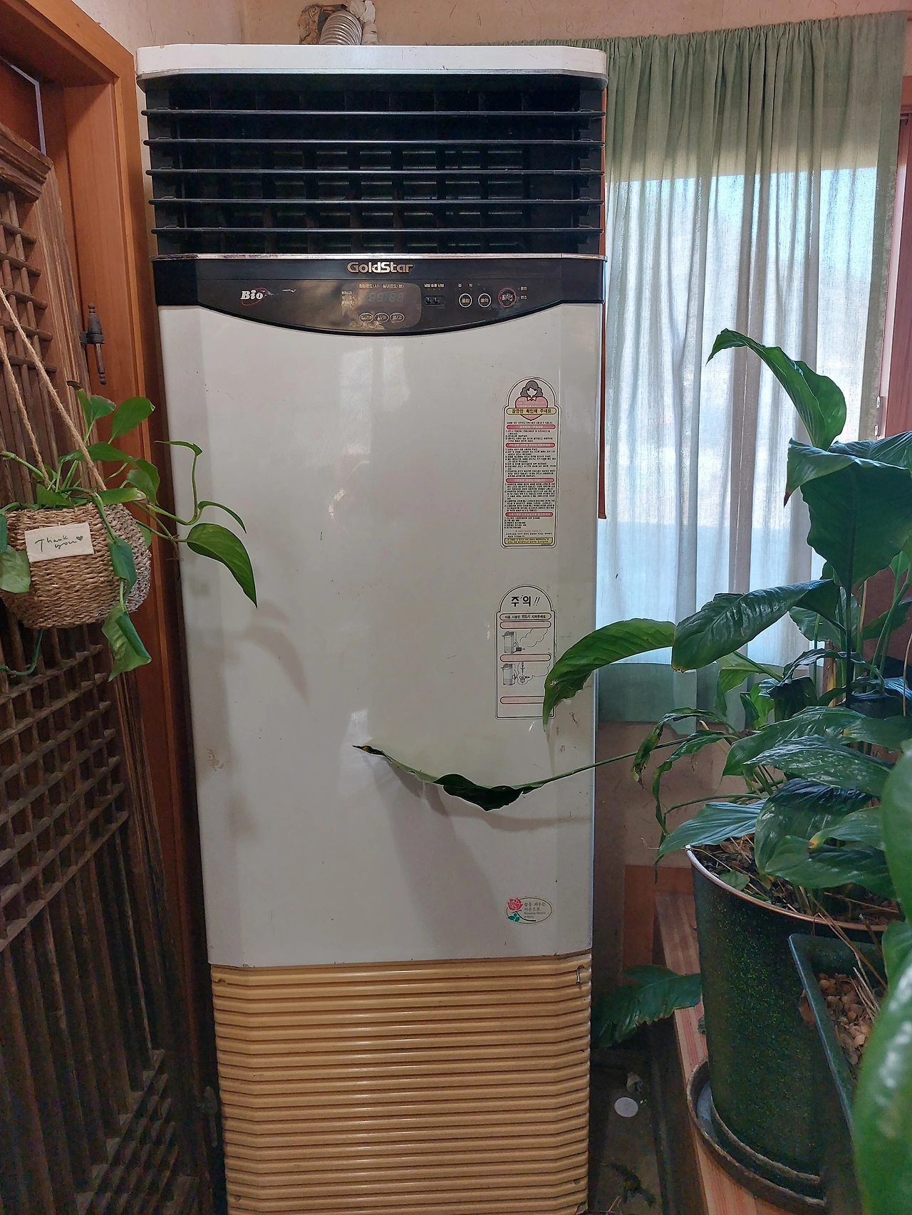 이름만 들어도 추억 돋는 골드스타 냉온풍기이다. 사십 년 전 제품이다. 5~6년 전까지 실 사용할 정도로 본전을 빼고 빌딩 지을 정도로 성능이 최고이며 내가 가진 최장수 제품으로 꼽는다. 지금이라도 코드를 꽂으면 작동하는데 이상이 없다. 난방은 기름과 함께 사용하지만 에어컨은 진짜 빵빵하다. 단, 헬리콥터 소리가 나서 대화는 불가능하다. 가성비 최고 골드스타 냉 온풍기에 반해서 무조건 가전은 같은 엘지를 구입하는 편이다. 이것이 소비자 브랜드 가치인 것 같다.이것 또한 버리지 못한다. 내 첫 자영업의 시작을 알리는 최초의 제품이라서 모셔두고 있다. 버리지 못하고 문짝으로 막아뒀다.