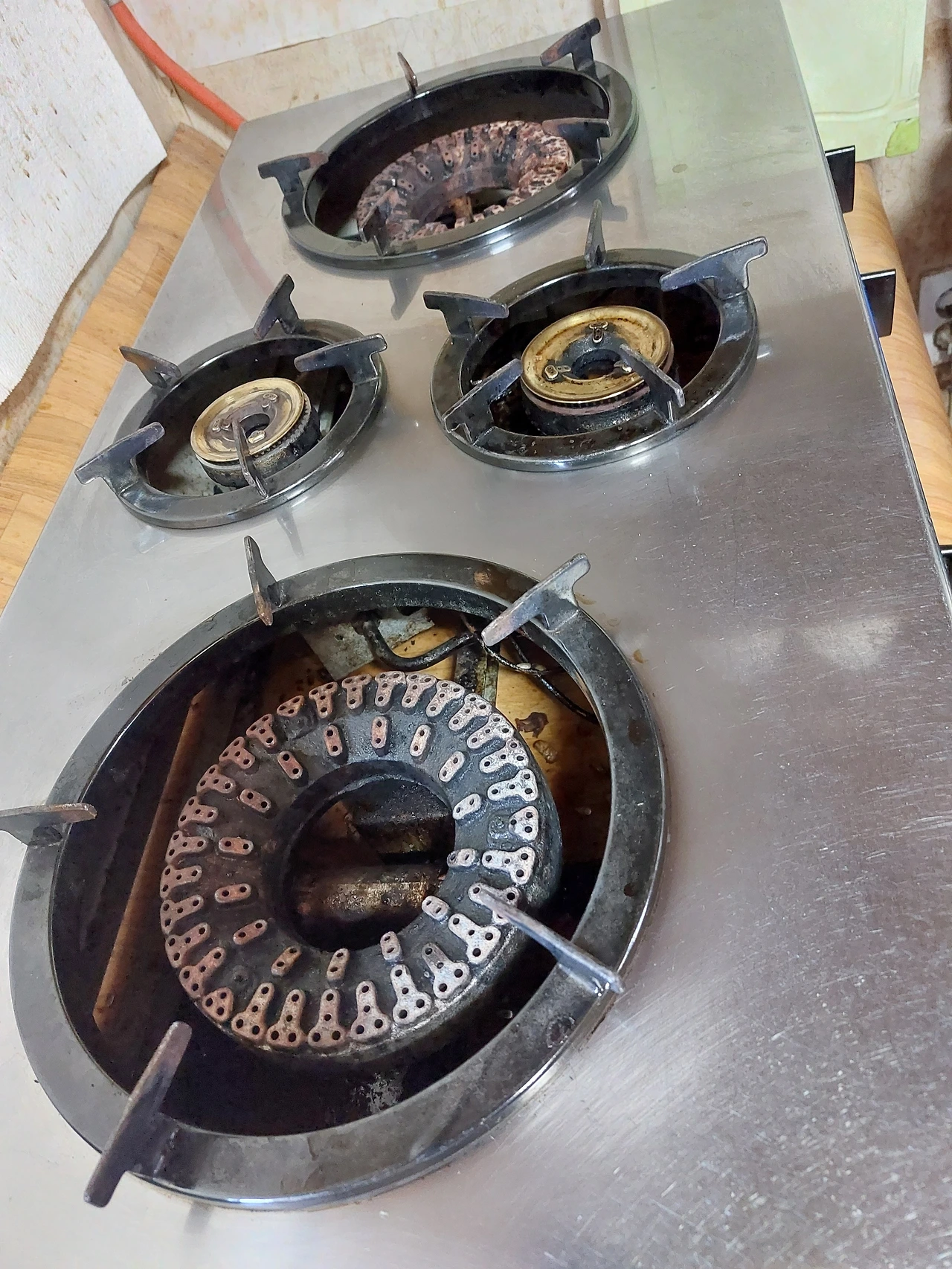 가전과 살림살이는 큰 것이 실용적일 것 같아서큰언니가 25년 전에 거금 20만 원을 주고 선물해 준 것이다. 촌 살림이라 손님들이 많이 오면 돼야지 고기 듬섬등섬 잘라 넣고 김치찌개도 한 냄비 끓여야 하고, 백숙도 삶고 계란찜도 하고, 생선도 튀겨야 할 것 같아서 4구짜리를 구입했다. 1 구는 그을음이 생겨 사용하지 못하는 반면 나머지 3구는 잘 사용하고 있다. 새로 구입하려 하니 60만 원가량 된다. 아마 120세 까지는 거뜬하게 쓰지 않을까 싶다. 내가 그때까지 살아있다면 말이다.